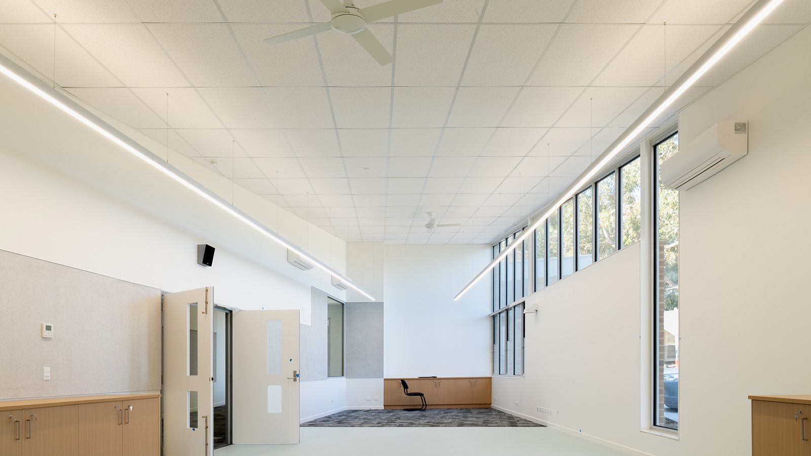 The Challenge: Schools present unique challenges, requiring spaces that foster a harmonious learning environment amidst the energy of eager primary students. The new buildings at Manchester Primary School featured complex architectural elements, including numerous angles and an expansive room with a raked ceiling. Additionally, the ceiling system needed to be durable, easy to install, and capable of providing an excellent auditory experience to enhance the overall learning atmosphere.